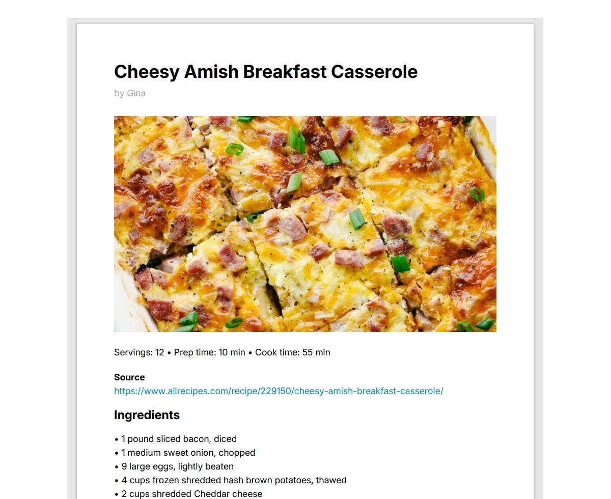 Export your entire Recipe Box with just one click/tap. All of your recipes can be exported to a beautiful PDF that you can download. It's like a built-in guarantee that your work saving recipes won't be wasted.